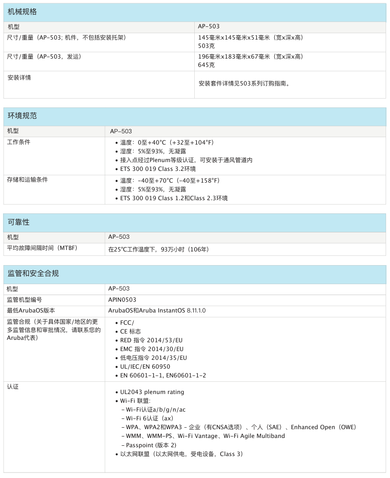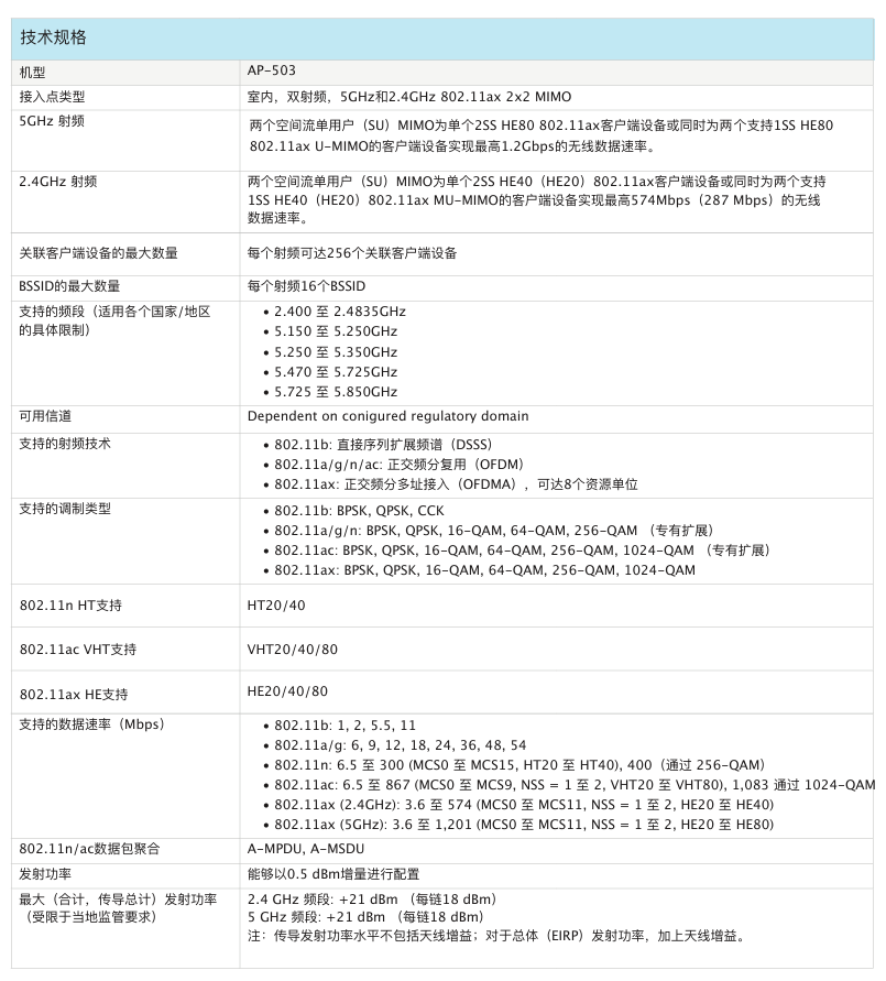 室內(nèi)中密度Wi-Fi 6接入點AP-503提供兼具高成本效益與高性能的連接,可以幫助各類組織應(yīng)對因移動使用需求提高、轉(zhuǎn)向云或物聯(lián)網(wǎng)環(huán)境而帶來的設(shè)備增長挑戰(zhàn)。503 系列的實際聚合數(shù)據(jù)速率高達 1.775 Gbps(HE80/HE40),可以為學(xué)校、中型辦公室和零售賣場等中等密度的場地和工作場所提供所需的連接速度和可靠性。