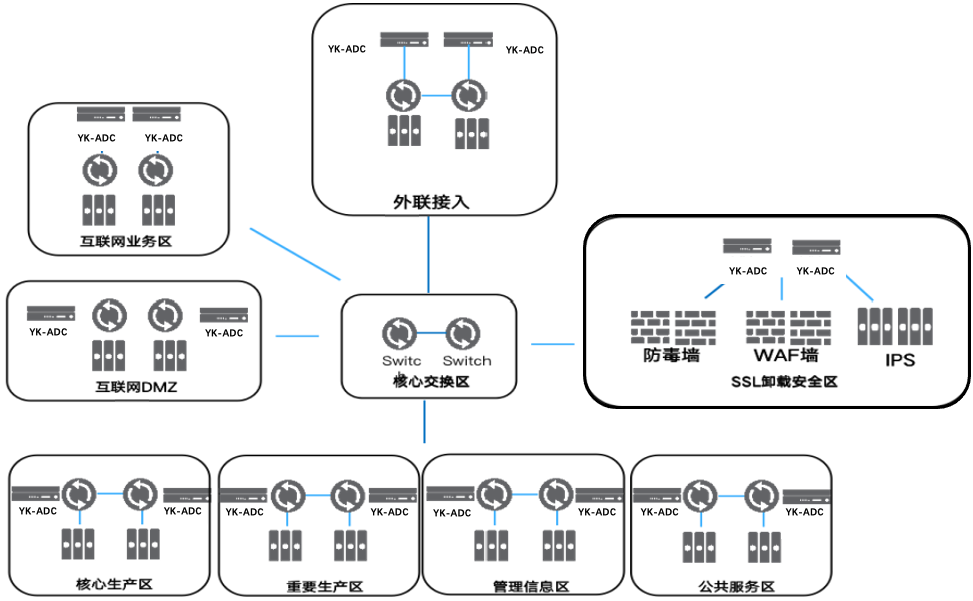 2、網(wǎng)銀接入LLB+GSLB結(jié)合,完美解決進站出站流量多鏈路負載、雙中心智能調(diào)度,智能聚合多條運營商鏈路,整合雙中心應(yīng)用系統(tǒng)資源