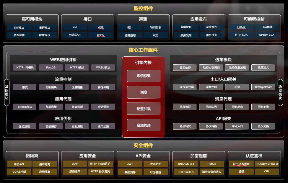 李剛強調(diào),“OpenNJet 充分吸收了開源生態(tài)的優(yōu)秀擴展模塊 ,在功能規(guī)劃上包含了5大類18類組件,特別是隨著安全威脅的快速增加,規(guī)劃了安全組件。除安全功能外,‘企業(yè)特性’也是OpenNJet關(guān)注的重點領域,如內(nèi)置的高可用性,自動化的集群發(fā)現(xiàn)及配置同步等?!?/p>