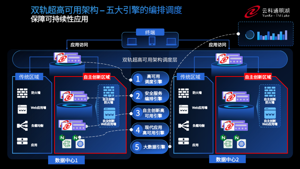 為實(shí)現(xiàn)雙軌超高可用架構(gòu)信創(chuàng)區(qū)和非信創(chuàng)區(qū)的跨域協(xié)同,實(shí)現(xiàn)信創(chuàng)區(qū)域和非信創(chuàng)區(qū)域的平滑過(guò)渡,leyu.樂(lè)魚通過(guò)五大引擎實(shí)現(xiàn)多層次的應(yīng)用可持續(xù)性。